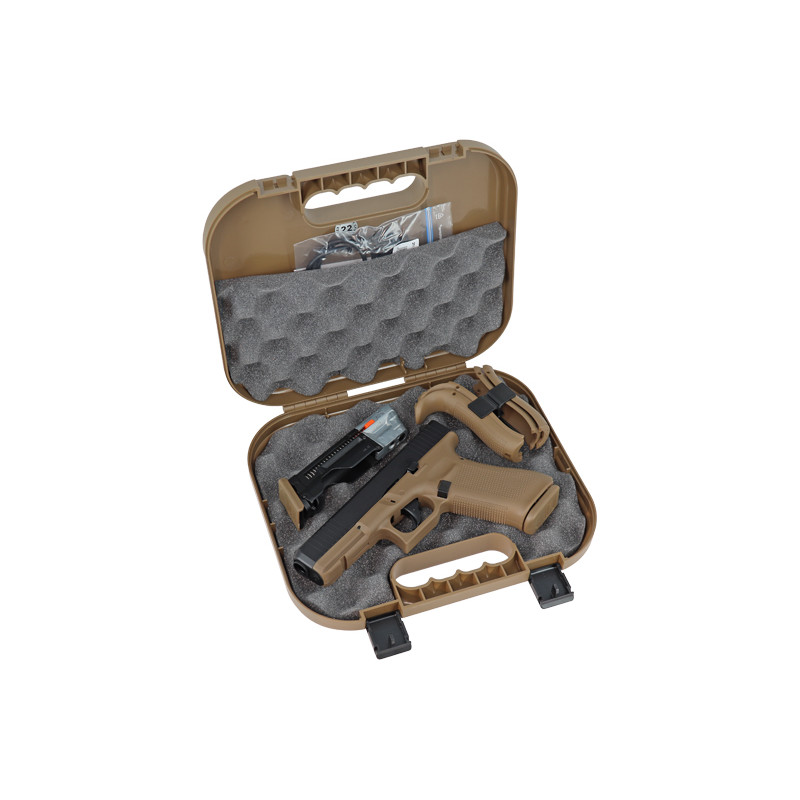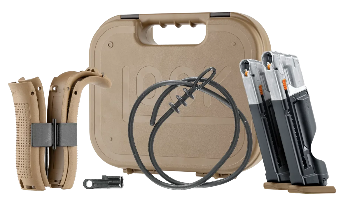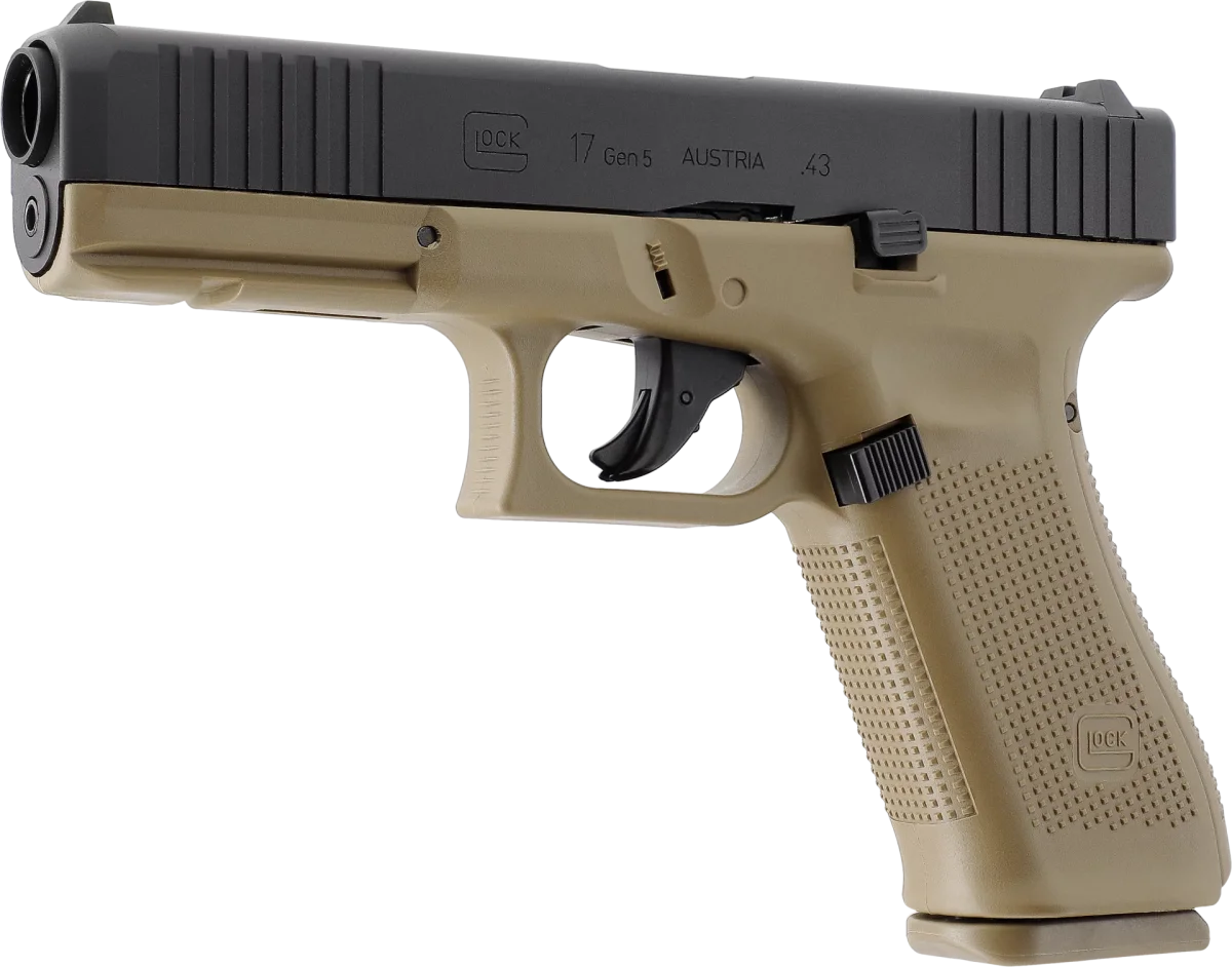 Cette réplique de paintball GLOCK T4E en calibre .43, sous licence officielle, est proposée en version Armée Française avec un cadre couleur Coyote. Idéale pour le paintball MagFed et l’entraînement, elle dispose d’une culasse CNC en aluminium hauterésistance (AW 7075) et d’un système Blowback pour une sensation de tir plus réaliste. Le cadre en polymère permet d’ajouter une attache pour dragonne. Son levier d’arrêt de culasse est ambidextre et le bouton de chargeur réversible, pour une utilisation pratique par tous. La sécurité de détente est automatique. Le chargeur de 8 coups permet de percer la capsule de CO2 sans outil, et un chargeur à perçage rapide est disponible en option comme accessoire.Compatible avec les organes de visée et holsters GLOCK ainsi que de nombreuses pièces aftermarket, elle est livrée avec 4 dos de poignée GLOCK, un œillet pour dragonne, un outil, une mallette GLOCK en Coyote et deux chargeurs.