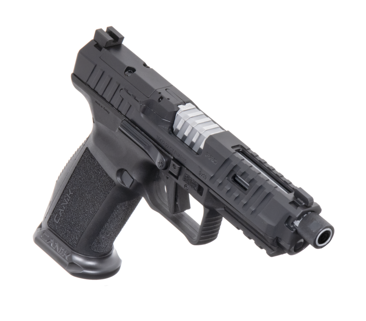 Equipé d’un canon chromé fluté, il est fileté en 13/5×1 LH pour l’adaptation d’un modérateur de son.