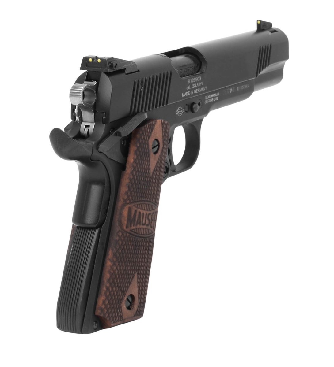 Pistolet Mauser semi-automatique en 22 LR reprenant le design du mythique pistolet Colt de 1911.