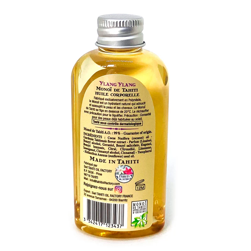 - Matière: 99% Monoi de Tahiti, Designation of Origin (Appellation of Origin). Contains neither colourants nor sunscreen